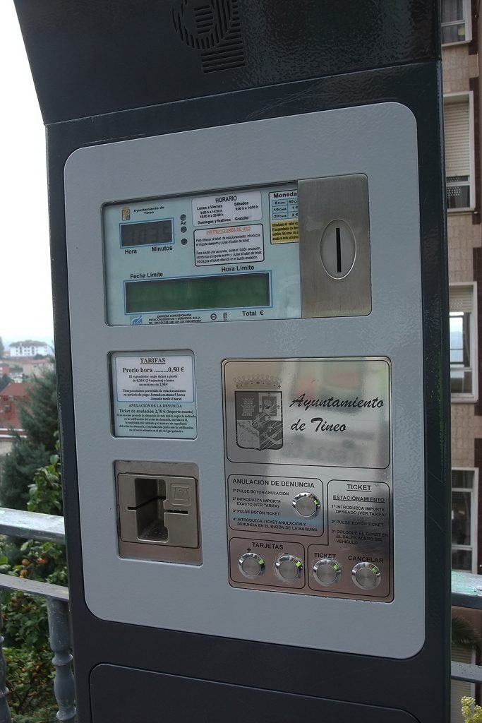 UTILIZACIÓN DEL EXPENDEDOR PARA OBTENER TICKET DE APARCAMIENTO PAGANDO CON MONEDAS
